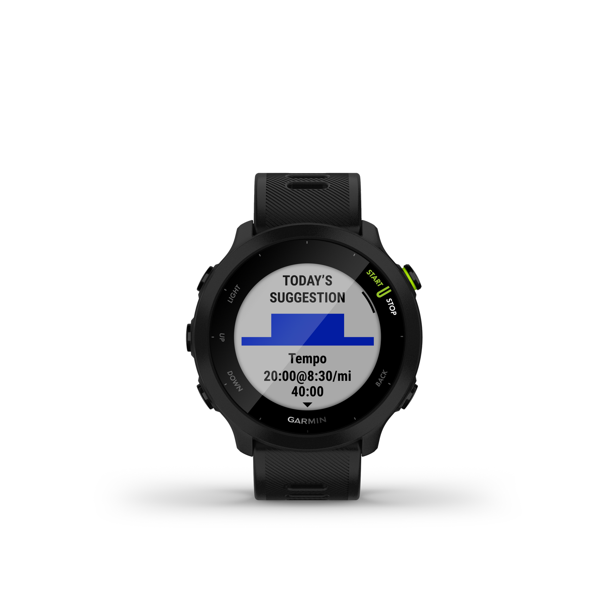 While you’re out and about, Forerunner 55 tracks steps, intensity minutes and more1.